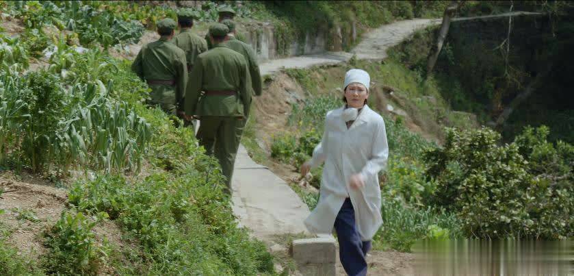 看童蕾奔跑的视角,身后的背景,不是荒山就是野地,即使有青菜的种植,但也干巴巴的。