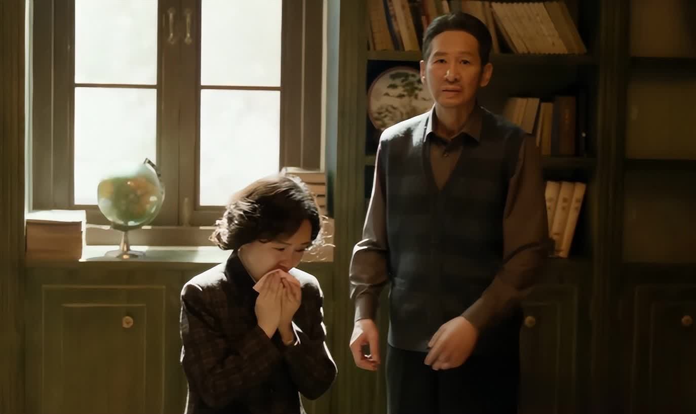 即使不看剧情,单看王劲松被风一吹就能倒下的状态,就知道有着家族病的方静妤去世了。